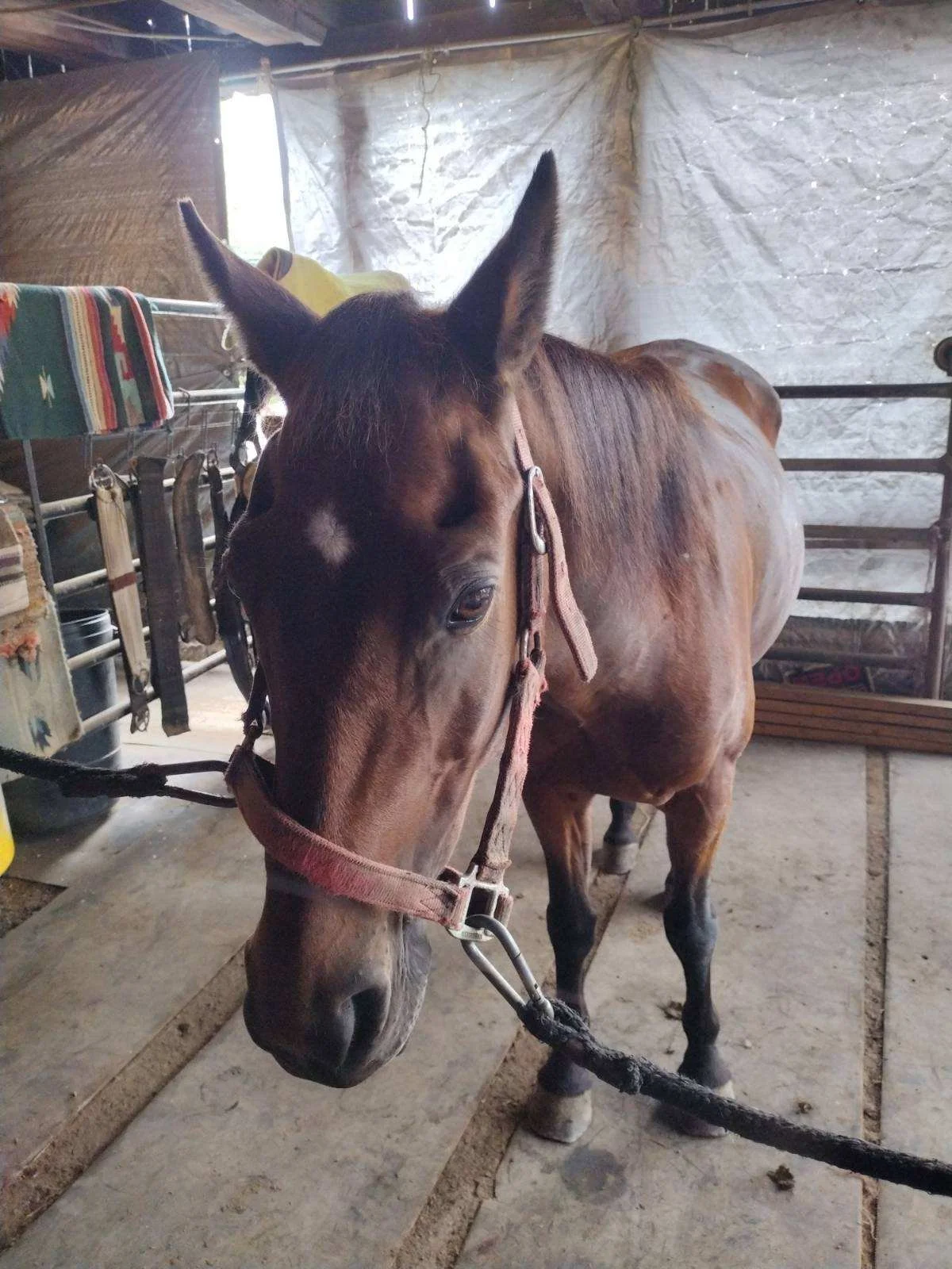 Sunshine was an endurance horse and then used for equine therapy (kids with special needs). Today, she is loving her job as a lesson pony. She also rides English or Western. Sunshine is our more advanced pony, in need of a confident and assertive rider.